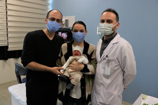 Perinatoloji Hekimi Doç. Dr. Murat Akbaş ile aralarında gönül bağı oluştuğunu belirten anne Kübra Kolcu, "20. haftada biz Murat hocaya ayrıntılı ultrason için geldik. Vaza Previa teşhisi konuldu. Bu her hocamın da kabul ettiği bir durum değildi. Manisa'da birkaç doktor daha gezdim herkes kabul etmedi bu durumu. Sezaryen günü anlaştığımız gün kanamam gerçekleşti. Bu da çok riskliydi bebek için. Murat hocam ve ekibi duruma müdahale ettiler. Hastanede olmamız bizim için bir avantajdı. Eğer evde olsaydık çok daha farklı bir durumla karşılaşabilirdik. Bu yüzden Murat hocaya gönülden teşekkür ediyoruz ve bebeğimize Murat hocanın adını verdik. Aramızda bir gönül bağı oluştu" diye konuştu.
