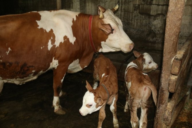 Rize’de ikiz doğuran inek sahibini sevindirdi