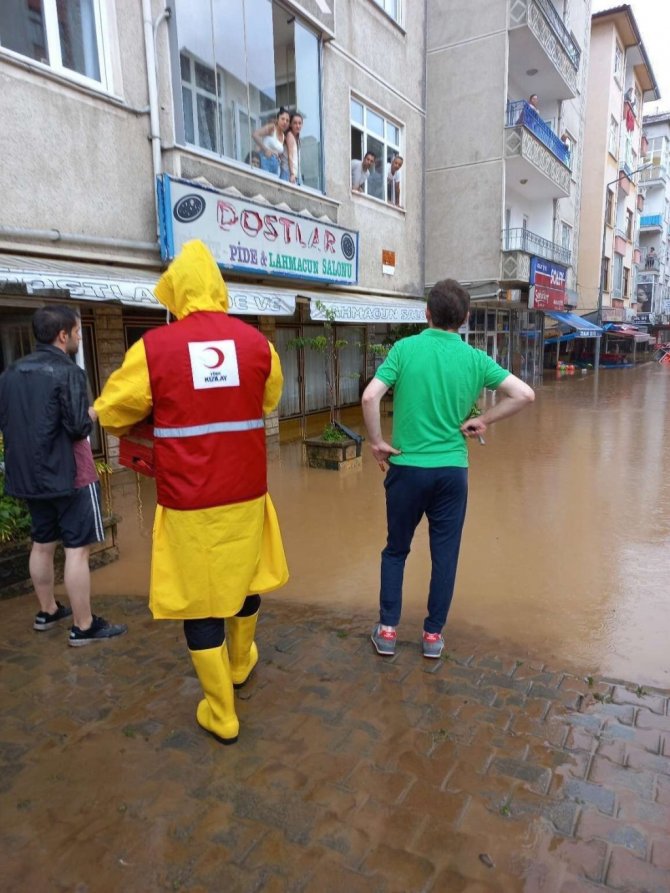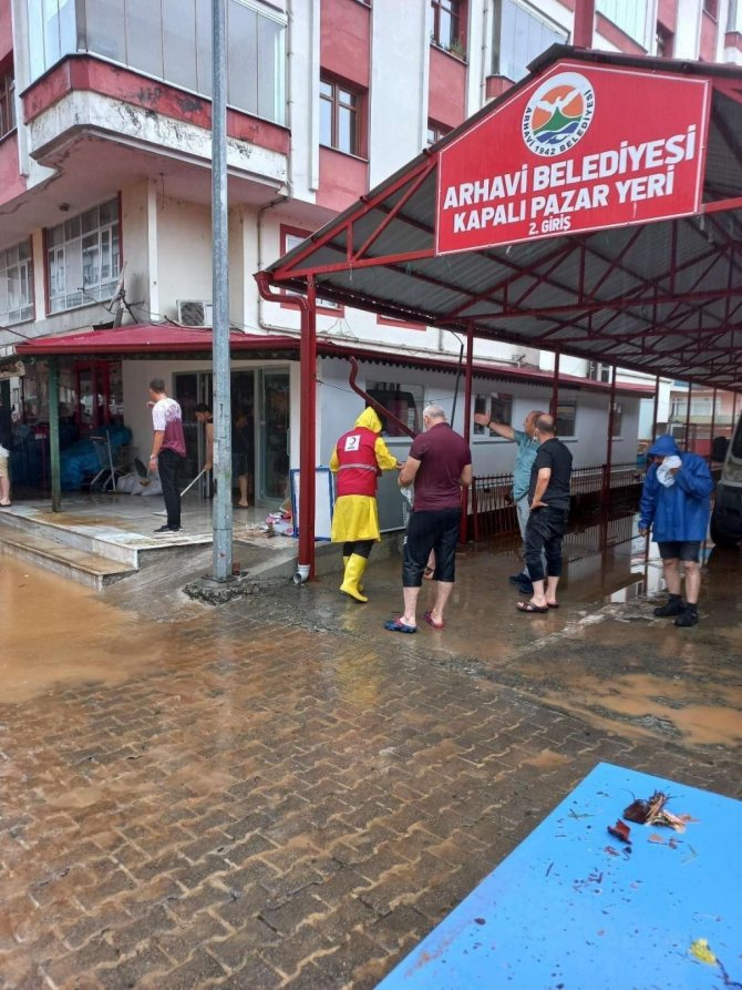 Kızılay'dan yapılan yazılı açıklamada, "Artvin'in Arhavi ilçesinde meydana gelen yoğun yağışlar derelerin taşmasına neden olurken bazı ev ve iş yerlerini de su bastı. Selzedeler için Rize'de de çalışma yürüten Kızılay, bölge takviye ekip görevlendirerek Arhavi'ye ulaştı. İlk aşamada temiz su ihtiyacını karşılayan Kızılay ekipleri mobil beslenme araçlarını da Arhavi'nin üç noktasına konuşlandırdı. AFAD ile koordineli olarak selzedelerin ihtiyaçlarını da belirlemek için bölgede çalışma yürüten Kızılay afet uzmanları, mobil beslenme araçlarıyla kumanya dağıtımı yapacak. Gelişmeleri yakından takip eden Kızılay bölgedeki selin etkilerini azaltmak için yardım faaliyetlerine devam edecek" denildi.
