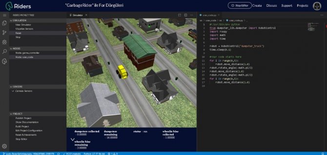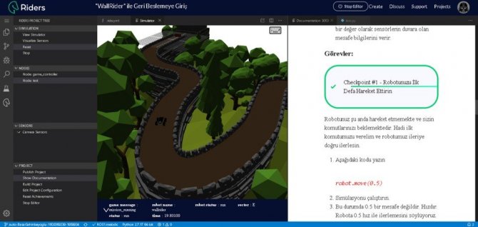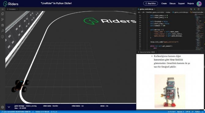 Python programlama dili, fizik ve matematik prensiplerini içeren bir kurs olarak geliştirilen DogaTech Riders online eğitimiyle öğrenciler; temel robotik kazanımlar elde ediyorlar. Canlı simülasyon ortamında robotlarını programlamak için temel fizik ve matematik prensiplerini kullanarak otonom araçlar ve endüstriyel robotlar gibi günümüz teknolojileri ile tanışıyor, robotlarını programlıyorlar.