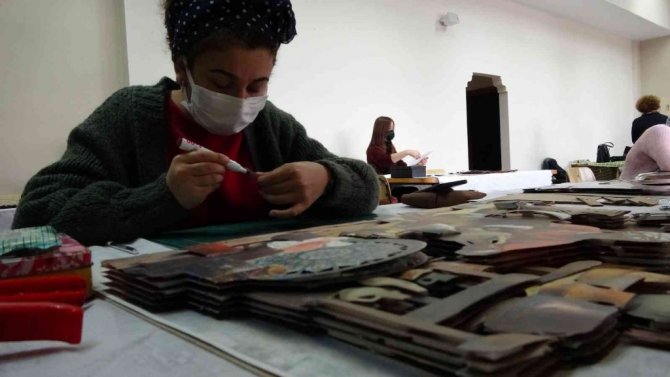 Kurs hakkında bilgi veren Kâğıt Rölyef Sanatı Öğretmeni Gülay Celep, tablo örneklerinin kâğıtlarını boyutlandırarak ve farklı işlemler uygulayarak yeni bir esere dönüştürdüklerini söyledi.