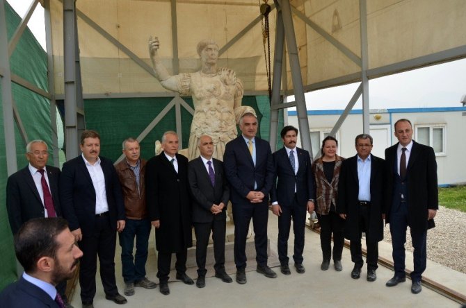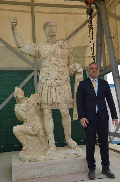 Öte yandan, Kültür ve Turizm Bakanı Mehmet Nuri Ersoy da antik kenti gezerek bulunan İmparator Traian heykeli ile birlikte diğer eserleri inceledi.