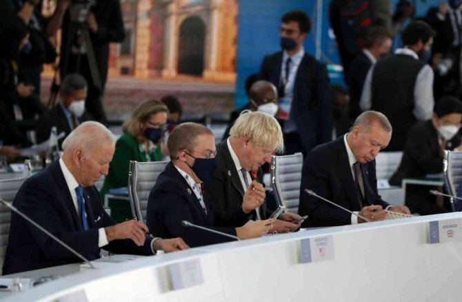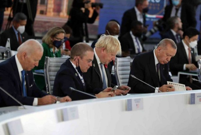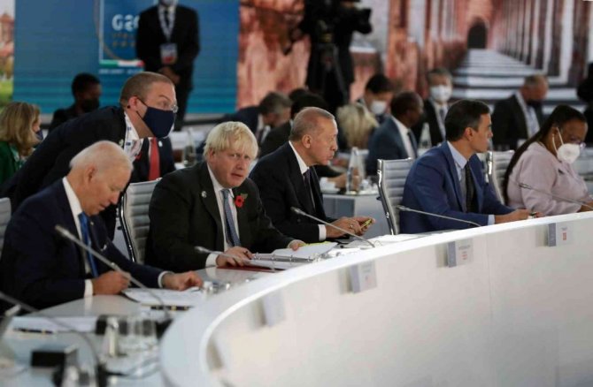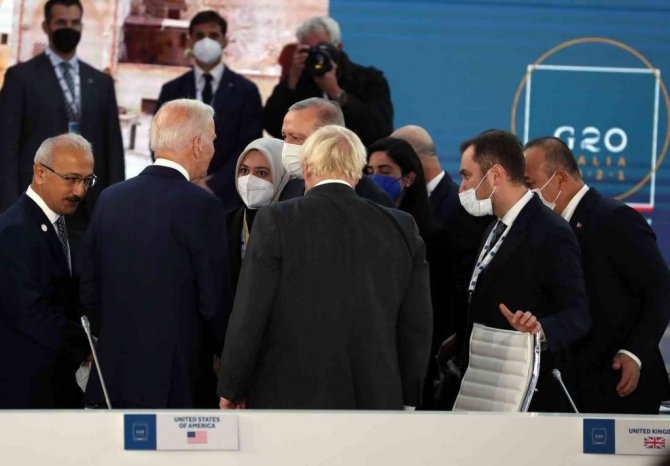G20 Liderler Zirvesi, İtalya'nın ev sahipliğinde başkent Roma'nın "EUR" bölgesindeki Nuvola Kongre Merkezi'nde başladı. Dünyanın en büyük 20 ekonomisinin liderleri korona virüs salgınında 2 yıl aradan sonra ilk yüz yüze zirvede bir araya geldi. Cumhurbaşkanı Recep Tayyip Erdoğan, zirvenin düzenlendiği salonda ABD Başkanı Joe Biden, İngiltere Başbakanı Boris Johnson ve İspanya Başbakanı Pedro Sanchez ile ayaküstü sohbet etti. Liderler daha sonra kendilerine ayrılan yerlere geçti. Cumhurbaşkanı Erdoğan'ın sağında İngiltere Başbakanı Boris Johnson, solunda ise İspanya Başbakanı Pedro Sanchez yer aldı. Zirvenin "Küresel Ekonomi" ve "Küresel Sağlık" başlıklı ilk oturumu İtalya Başbakanı Mario Draghi'nin açılış konuşmasıyla başladı.