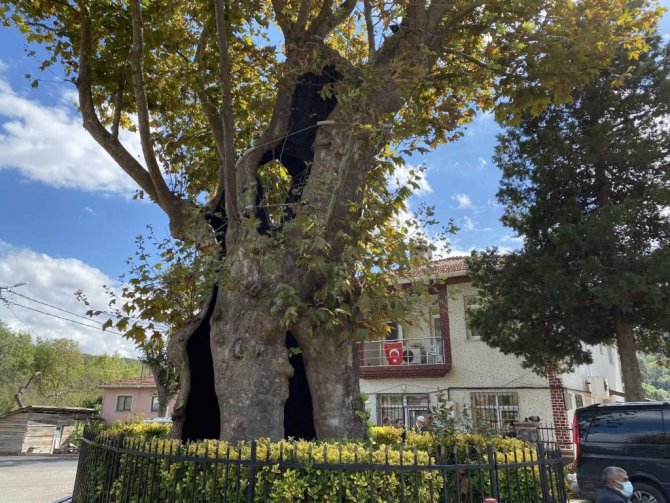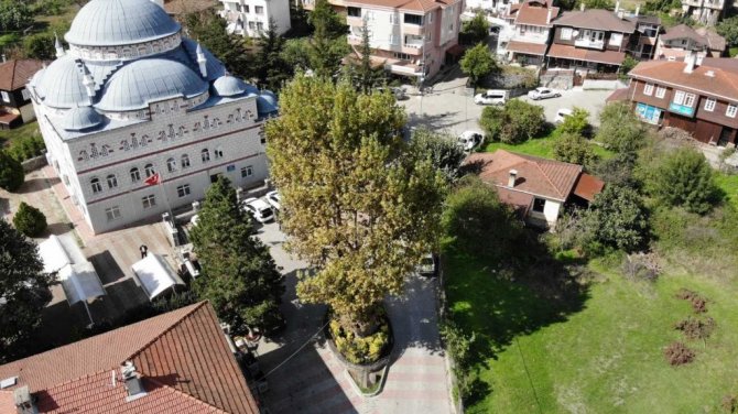 Öte yandan neredeyse 8 asırlık olan "işkence ağacı" Kabakoz Çınarı havadan görüntülendi.