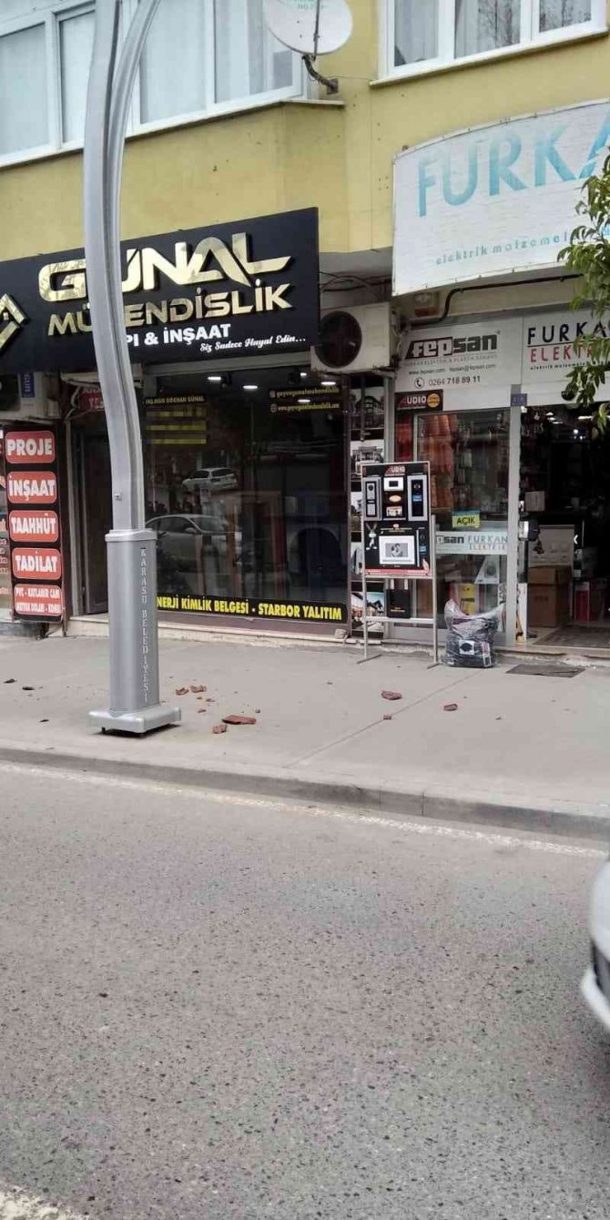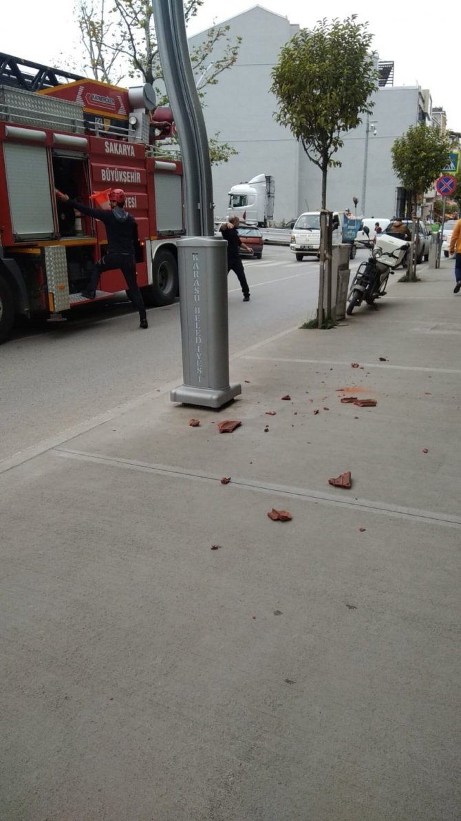 Karasu ilçesi İncilli Mahallesi Mevlana Caddesi üzerinde bulunan iki katlı bir binanın çatı katından şiddetli rüzgarın etkisiyle kiremit parçaları düştü. Çevredeki vatandaşların ihbarı üzerine olay yerine itfaiye ekipleri sevk edildi. Çevrede güvenlik önlemi alan ekipler, çatı katındaki kiremit parçalarını temizledi. Kısa süreli paniğin yaşandığı olayda yaralanma veya can kaybının olmaması teselli kaynağı oldu.