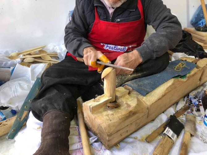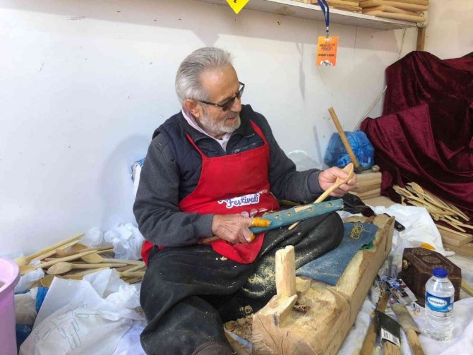 Festivalde sanatını icra eden 60 yıllık kaşık ustası Sabri Özşahin, "Kaşık 14-15 sefer taslaktan başlar ve elden geçer. Bunlar yemek karıştırma kaşığıdır. Yemek yeme kaşığı daha ufak ve estetik olur. Ben günde 250 tane kaşık yaptığımı biliyorum. Ama şimşirden olmaz kayın ağacından olur" dedi.
