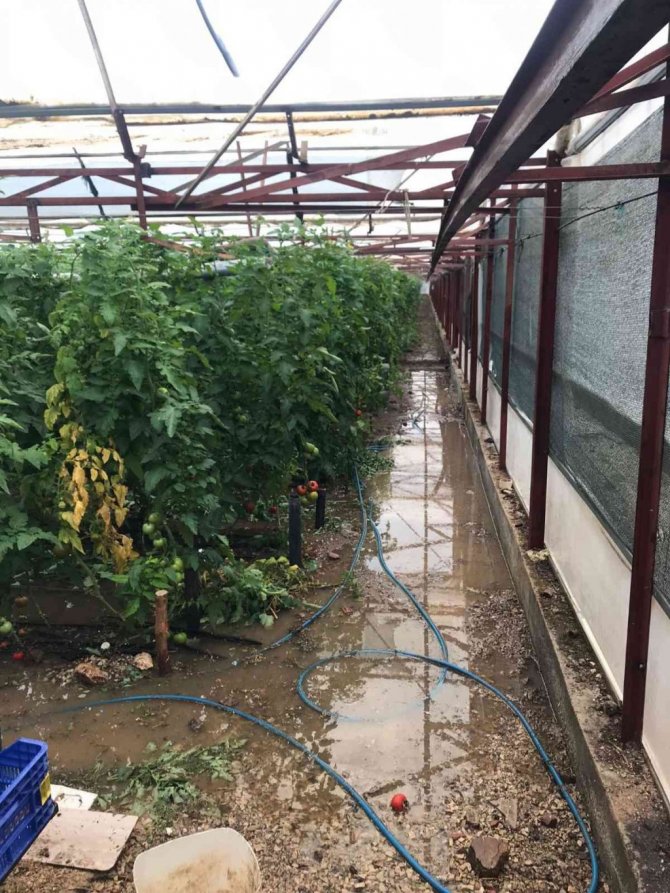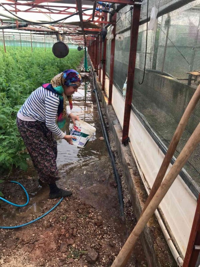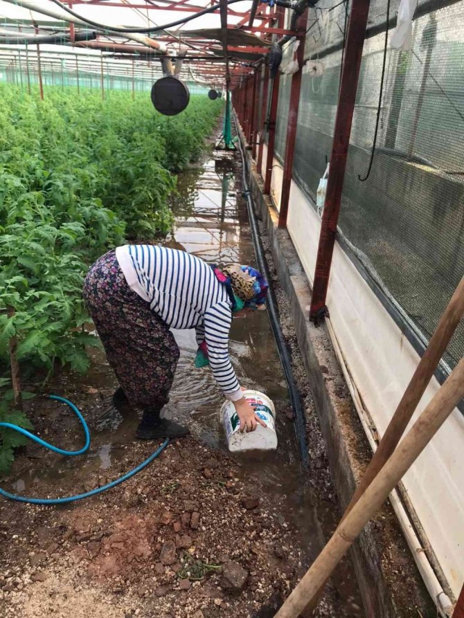 Sağanak yağış, seraların tahliye kanallarını tıkadı