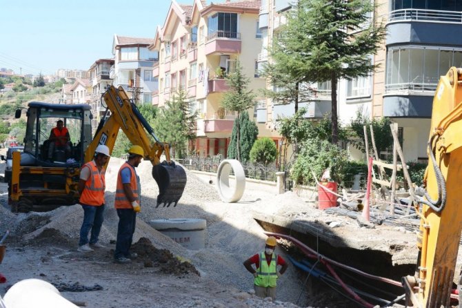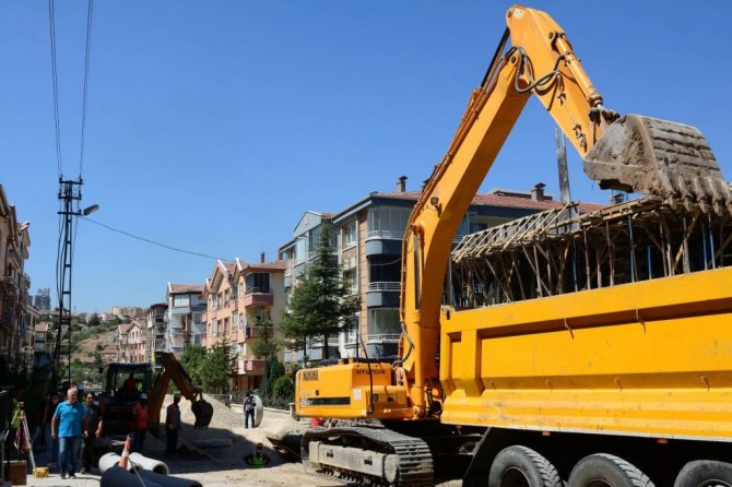 Mamak Dereboyu Caddesi'nde de yağışlara karşı altyapı çalışmaları devam ediyor