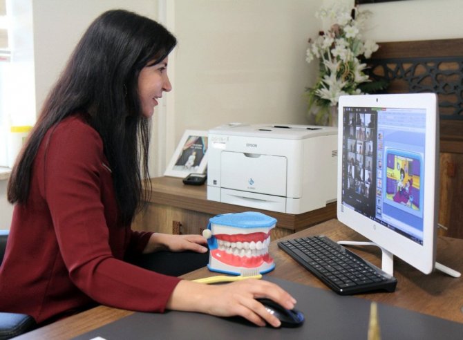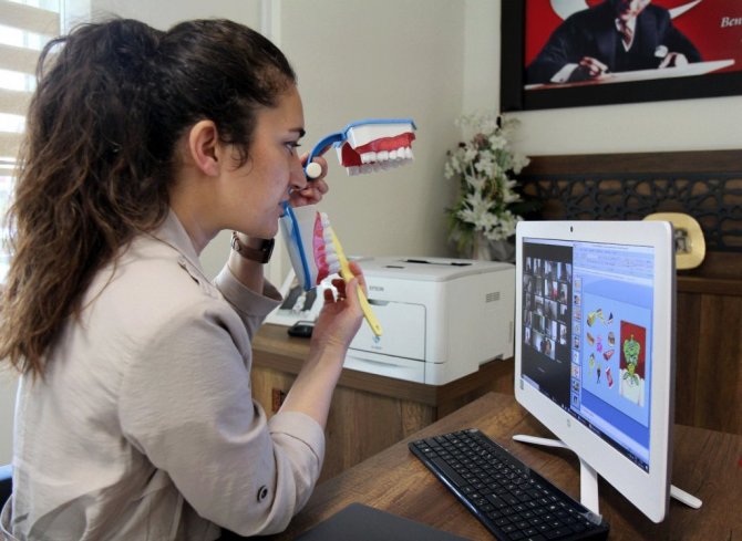 Küçük yaşlardan itibaren çocuklarda diş fırçalamanın önemini anlatmak ve sağlıklı dişlere sahip olmanın birçok hastalığı önlediğine dair vurgu yapmak için eğitim programı gerçekleştirdiklerini açıklayan Dt. İlgin Revna Kaytan; "Koruyucu Diş Sağlığı Hizmetleri kapsamında Denizli'de Merkezefendi 19 Mayıs İlköğretim Okulu 2. sınıf öğrencileri ve Pamukkale Hüsamettin Kulaklı İlköğretim Okulu 2. sınıf öğrencileri ile online ağız diş sağlığı eğitimi planladık. İlgili okul müdürlükleri ile görüşerek 16 şubede 520 kişilik 2. Sınıf öğrencisine hastanemizce hazırlanmış olan online eğitim veriyoruz. Çocuklara ağız ve diş sağlığının önemini, diş maketi üzerinden doğru diş fırçalama tekniği ile ağız ve diş sağlığı için doğru beslenme konularında bilgilendirme yapıyoruz. Ayrıca çocuk dişlerinin pratik bakım rehberi konulu hazırladığımız broşürlerimizi de tüm öğrenci ve velilerimize iletiyoruz" diye konuştu.