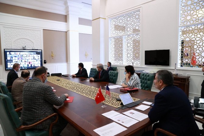 Sağlık Bakanı Dr. Fahrettin Koca, ABD Ticaret Odası, ABD-Türkiye İş Konseyi ve Türkiye Odalar ve Borsalar Birliği (TOBB) işbirliğiyle gerçekleştirilen video konferansa katıldı. Aralarında TOBB Başkanı Rifat Hisarcıklıoğlu ve ABD Ticaret Odası Türkiye Ortadoğu Bölümü Kıdemli Başkan Yardımcısı Khush Choksy’nin de olduğu 60’tan fazla yetkili ve iş insanı toplantıda bir araya geldi.