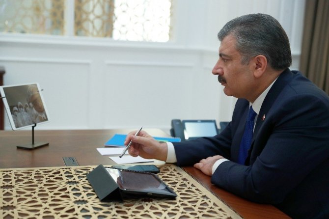 Sağlık Bakanı Fahrettin Koca, Covid-19 hastalarını tedavi eden hekim ve sağlık çalışanları ile video konferans yoluyla görüştü. Bakan Koca, farklı illerde tedavi gören hastaların durumu ve tedavi süreçleriyle ilgili bilgi aldı.