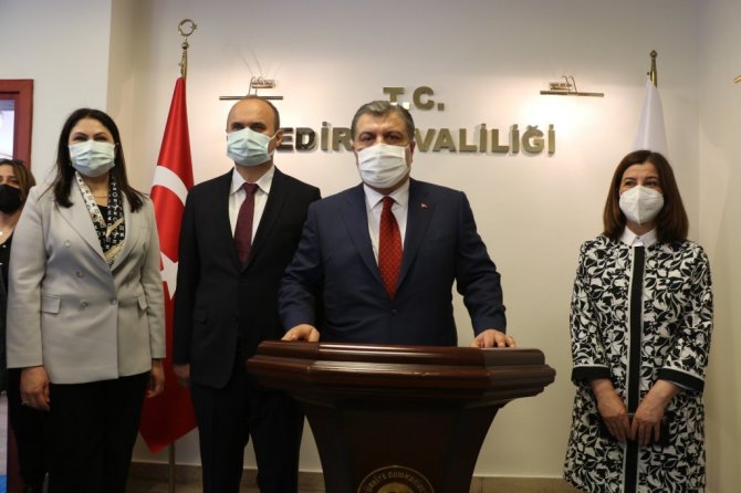 Bakan Koca, "Bildiğiniz gibi ülke genelinde sıkılaştırılmış kurallarla süren bir kısıtlama uygulamasıyla beraber bölgelerde durum değerlendirmesi yapıyoruz. İllerimizin durumunu yerinde değerlendirmek ve tedbirleri yerinde kontrol etmek için geçtiğimiz cuma günü Antalya'daydık. Bugün ise Edirne'deyiz. Yerel yöneticilerimizle beraber Trakya bölgesindeki dört ilimizi ele alacağız" dedi.