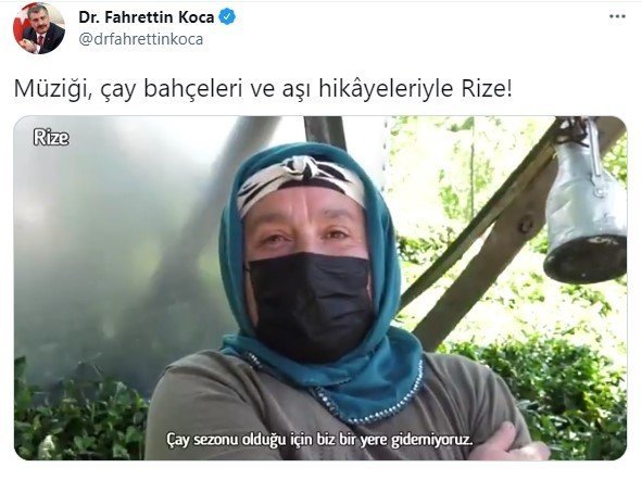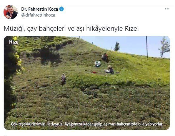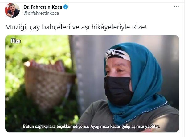 Sağlık Bakanı Fahrettin Koca, sosyal medya hesabından Rize'de ekiplerin aşı serüvenin yer aldığı bir video paylaştı.