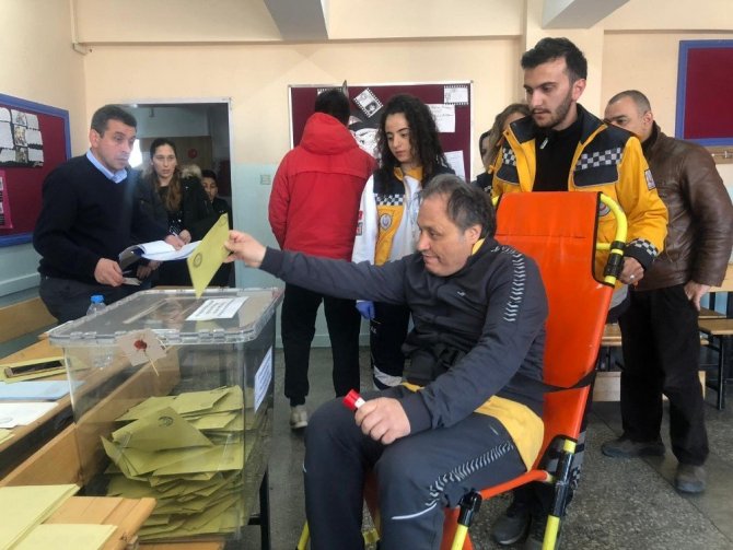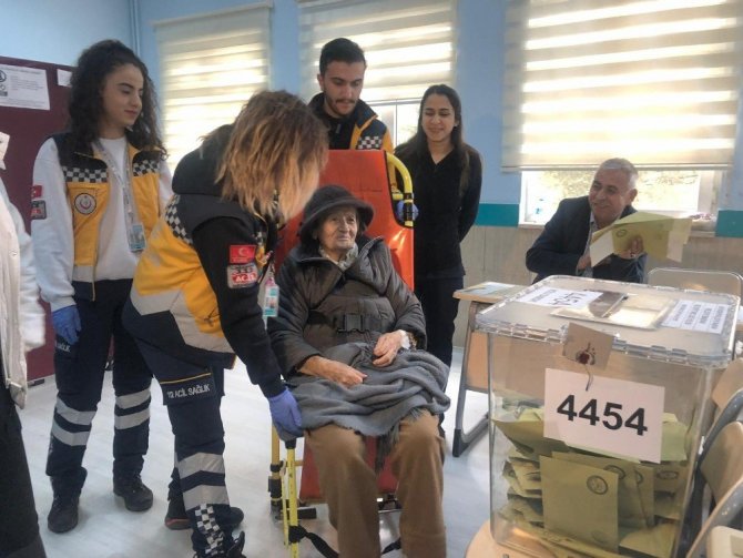 Sağlık Bakanlığı, hastanede tedavi olan vatandaşların oy kullanması için seferber oldu. Sağlık ekipleriyle birlikte ambulansla oy kullanmaya götürülen İshak Şirin isimli hasta, “Allah devletimize zeval vermesin, hizmet çok iyi” dedi.