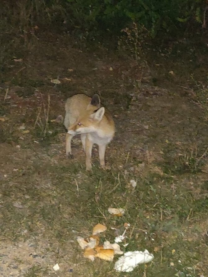 Sağlık çalışanları aç kalan tilkiyi elleriyle besledi