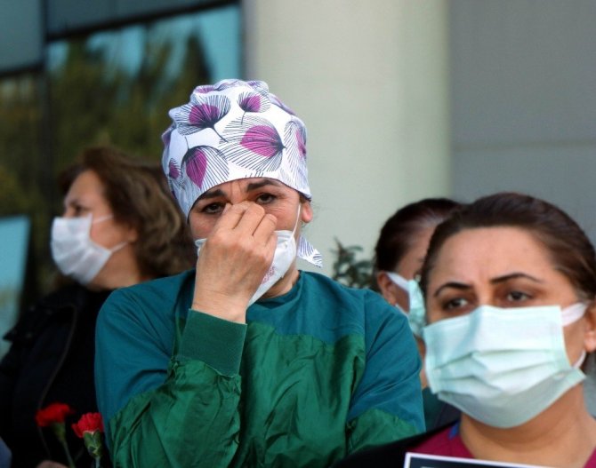 Sağlık çalışanları, arkadaşlarını anarken gözyaşlarını tutamadı