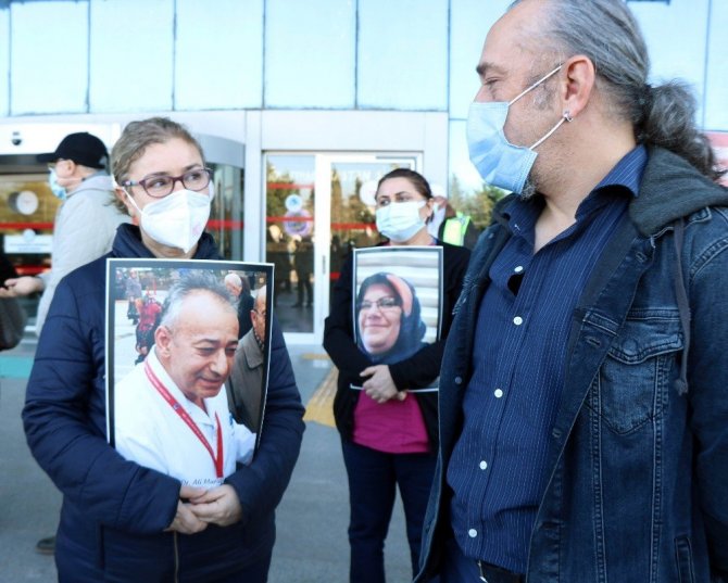 Basın açıklamasının ardından, hayatını kaybeden sağlık çalışanlarının bulunduğu fotoğraflara karanfil bırakıldı.