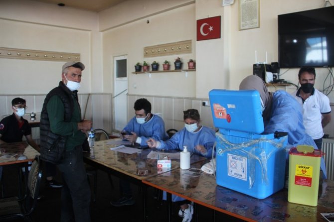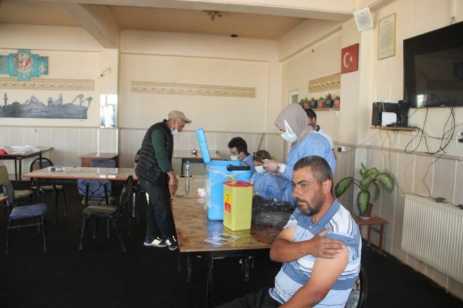 Erzurum'da sağlık çalışanları en ücra köylere giderek, vatandaşları korona aşısıyla buluşturuyor. Aşı olmak isteyen vatandaşlar, köy kahvehanelerinde toplanarak istedikleri aşıyı yaptırabiliyor.
