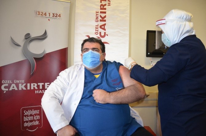 Ünye'de 2. doz aşı uygulaması başlamasıyla ilk vurulan Ordu Tabip Odası Başkanı Uzman Dr. Ali Coşkun, aşının bu zamana kadar herhangi bir yan etkisinin görülmediğini belirterek vatandaşlara aşı olmalarını söyledi.