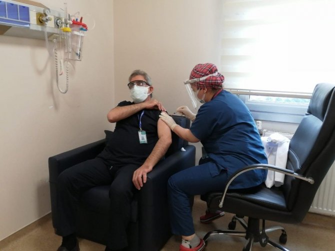 Korona aşısı yaptıran doktorlardan Mehmet Azgün, "Bugün sağlık personeli, hekimlerimiz, diğer sağlık personellerimiz olmak üzere aşılama çalışmaları başladı. Biz de aşı çalışmaları kapsamında bütün hazırlıklarımızı yaptık. Personellerimiz randevu almak suretiyle aşılanmaya başlanmış oldu. Öncelikle bu zamana kadar çalışan tüm sağlık çalışanlarımıza teşekkür ediyorum. Sağlık personelinin aşılama işlemlerinin tamamlanmasından sonra bakanlığımızın belirlediği öncelik sırasına göre vatandaşlarımıza yönelik hazırlıklarımız tamamdır. Çalışmalar devam edecektir" dedi.