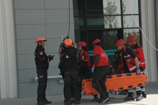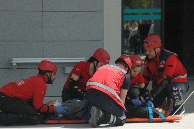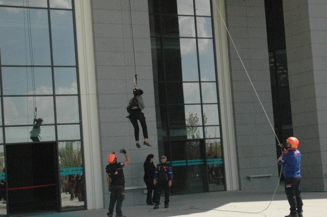 Olası bir acil durum anında yapılacakların canlandırıldığı tatbikatta, acil durum alarmının ardından personellerin binadan tahliyesi sağlandı. Tahliyenin ardından, kurtarma ekibinin yukarı tırmanması, 6. katta mahsur kalan personelin kurulan platform ile aşağı indirilmesi ve dumandan etkilenen kişiye ilk yardım müdahaleleri canlandırıldı. Gerçeği aratmayan tatbikatta, UMKE ekiplerinin kurtardığı personellerin ambulanslara bindirilmesi de uygulamalı olarak tatbik edildi.