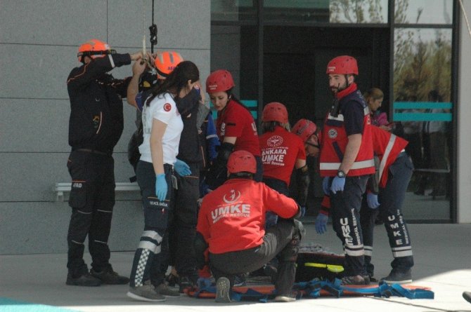 Sağlık Bakanlığı’nda, 3 aylık eğitimin ardından kurtarma, tahliye ve ilk yardım tatbikatı gerçekleştirildi.