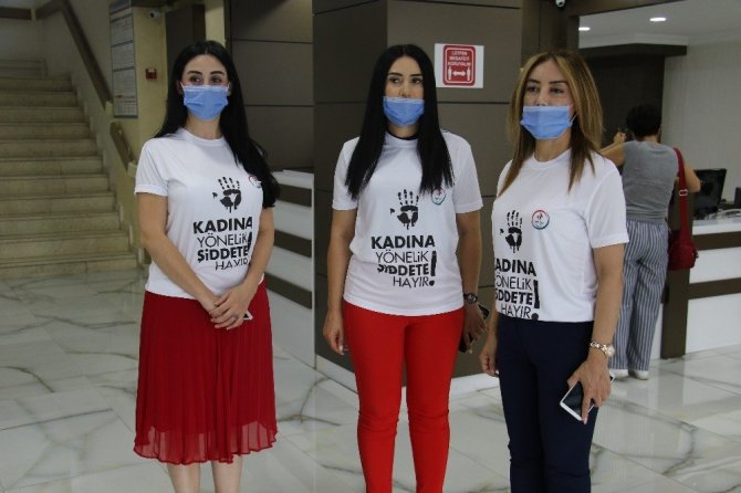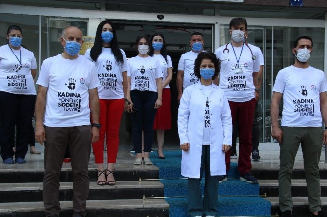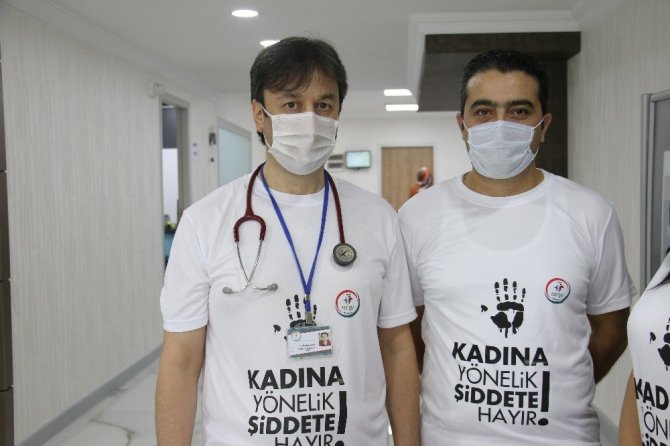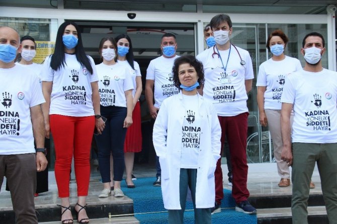 Sağlık çalışanlarından kadına şiddete tişörtlü tepki
