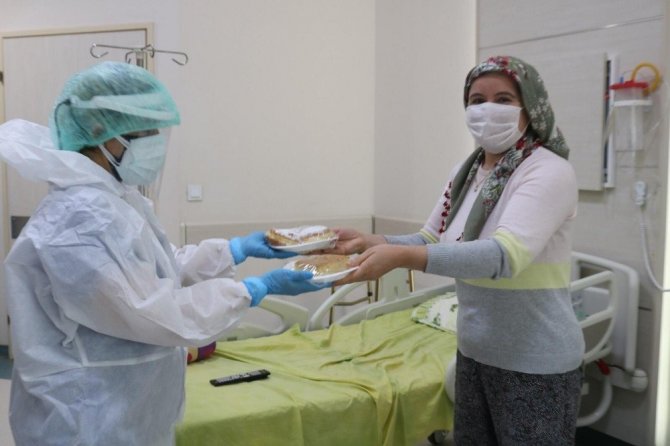 Antalya Kepez Devlet Hastanesi'nde çalışan hemşireler, korona virüs tedavisi gören ve bu sebeple yeni yılı hastanede geçirecek olan hastalara moral vermek adına evlerinde pasta, börek gibi ikramlıklar hazırladı.