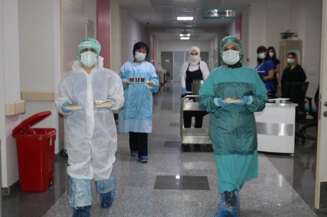 Antalya Kepez Devlet Hastanesi hemşireleri covid-19 ünitesinde yatmakta olan ve gördükleri tedavi sebebi ile evlerinden uzak kalan hastalara moral vermek adına, evlerinde pasta, börek gibi ikramlıklar hazırladı. Hemşireler, evlerinden uzakta tedavi sebebi ile yeni yılı hastanede geçirecek olan hastalara bir nebzede olsa moral vermek istediklerini belirtti.