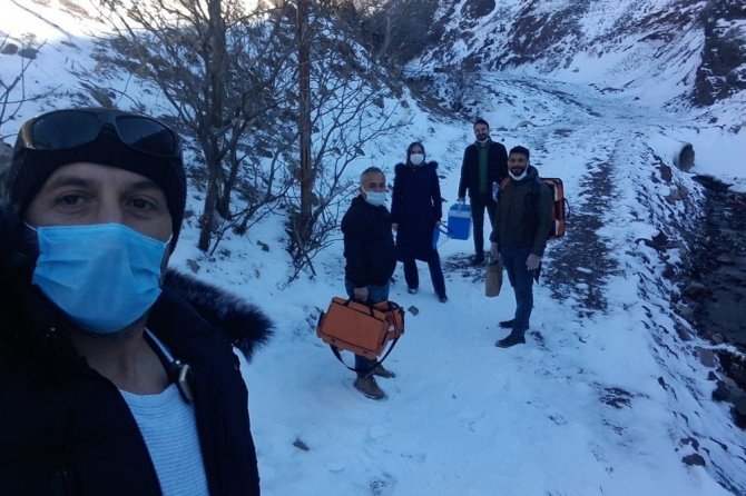 Sağlık ekipleri, karlı yolları aşarak, aşılama çalışmaları yapıyor