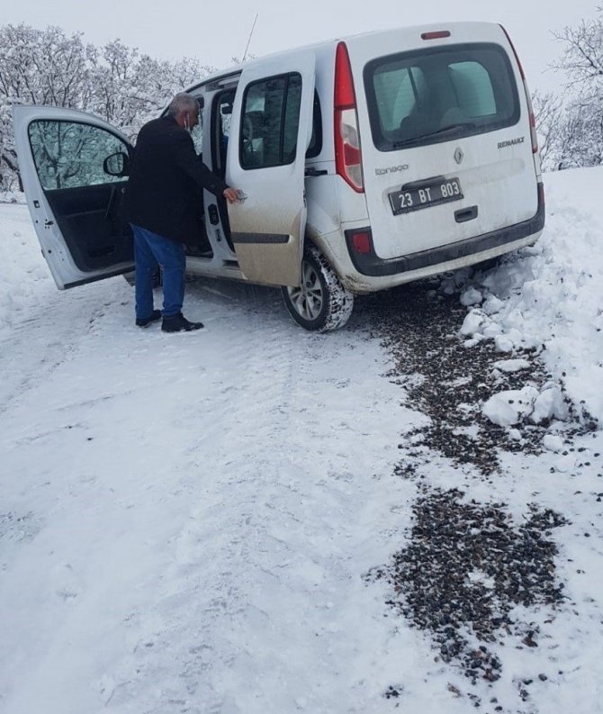 Elazığ'da Koronavirüsle (Covid-19) mücadele kapsamında başlatılan aşı çalışmalarında ekipler karlı yolları aşarak evlere ulaşıp görevlerini yerini getiriyor.