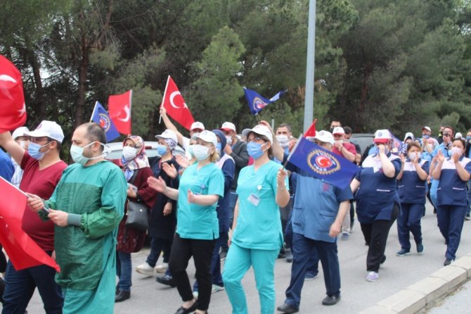Sağlık-İş üyeleri taleplerinin karşılanması için rektörlüğe yürüdü