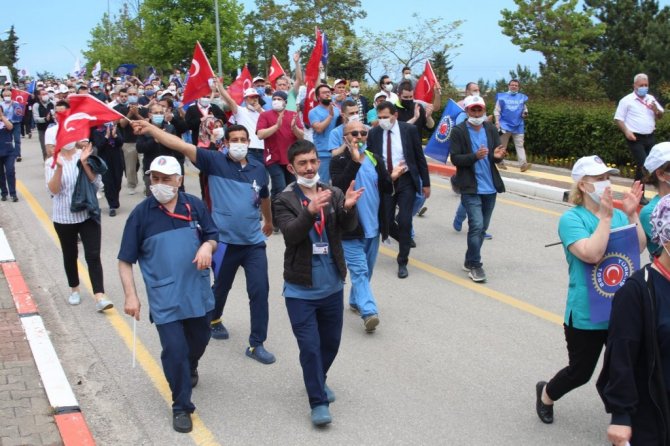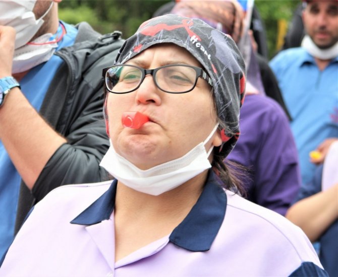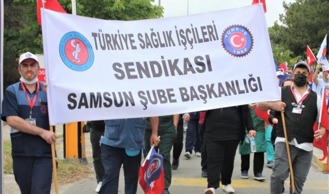 Türkiye Sağlık İşçileri Sendikası (Sağlık-İş) Samsun Şubesi üyeleri, taleplerinin karşılanması için rektörlüğe yürüyüş düzenledi.