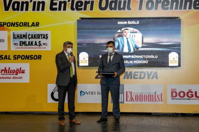 Van Ekonomist Dergisi tarafından bu yıl 7'ncisi düzenlenen Van'ın Enleri Ödül Töreni programda pandemi süresince gece gündüz fedakarca çalışan sağlık çalışanlarını unutmayan ZERO Media Grubu, İl Sağlık Müdürü Prof. Dr. Mahmut Sünnetçioğlu'na onur plaketi takdim etti.
