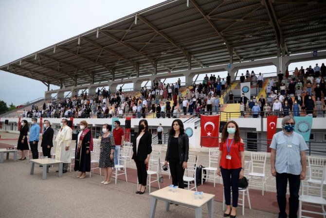 BUÜ Görükle Kampüsü'nde yapılan programa Rektör Prof. Dr. Ahmet Saim Kılavuz, MEYOK Koordinatörü Prof. Dr. Çağatan Taşkın, Sağlık Hizmetleri MYO Müdürü Prof. Dr. Elif Moğol, akademisyenler, öğrenciler ve aileleri katıldı. BUÜ Rektörü Prof. Dr. Ahmet Saim Kılavuz, mezun olmaya hak kazanan öğrencileri tebrik etti. Ailelerin ve akademisyenlerin en iyi şekilde destekledikleri öğrencilerin, artık yeni bir hayata adım attıklarının altını çizen Rektör Prof. Dr. Ahmet Saim Kılavuz, "Hepiniz için yeni bir hayat başlıyor. Yaşadığımız pandemi sürecinde sağlığımızın ve sağlıkçılarımızın kıymetini çok daha iyi anladık. Sizler de bu kutsal ve özel mesleğin bir parçası oluyorsunuz. Mesleğinizi en iyi şekilde yapacağınıza ve sürekli yeni bilgiler öğrenerek kendinizi geliştireceğinize gönülden inanıyorum. Gittiğiniz her yerde ve bulunduğunuz her ortamda Bursa Uludağ Üniversitesi'ni en iyi şekilde temsil edeceğinizi biliyorum. Hepinize yeni hayatınızda başarılar ve mutluluklar diliyorum. Yolunuz açık olsun" şeklinde konuştu.