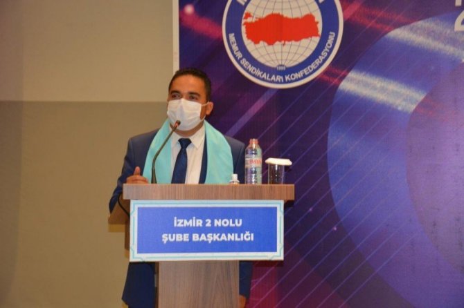 Sağlık-Sen Genel Başkanı Semih Durmuş’un katılımları ile gerçekleşen Sağlık-Sen İzmir 2 No’lu Şube 2. Olağan Genel Kurulu toplantısında konuşan mevcut başkan Ekrem Özdemir, insanlara faydalı olmak ve sağlık çalışanlarını ayrım gözetmeksizin yalnız bırakmamak için çalıştıklarını belirtti. Özdemir, “Bizim kültürümüz, iyi dost iyi günde çağrıldığında, kötü günde ise çağrılmadan gelendir; bu anlayış üzerine kuruludur. Bunun için üyemiz olsun olmasın sağlık çalışanlarının bir derdi, sorunu olduğunda onların bize gelmesini beklemeden biz onlara gitmeye gayret ettik. 4 yıl önce 3 bin 216 üye ile devraldığımız İzmir 2 No’lu şubemiz, bugün 15 Temmuz mutabakatlarına göre 5 bin 404 üye ile tüm kurumlarımızda yetkili oldu. 4 yıl içerisinde tam 2 bin 188 üye artışı sağlayan bu büyük teşkilatımızın tüm mensuplarına yürekten bir alkış istiyorum. Bizler sağlık emekçilerinin kapısını sadece yetki dönemlerinde çalanlardan asla olmadık, olmayacağız. Yılın 365 günü yönetim kurulumuzla, ilçe başkanlarımızla, kurum temsilcilerimiz ve delegelerimizle sağlık çalışanlarının yanında olduğumuzu gösterdik. Hangi kurumda, nerede bir sağlık çalışanı varsa onun üzüntüsüne ortak olmak, sevincini paylaşmak, dertleriyle kederlenmek, sorunlarına çözüm, yaralarına merhem olmak için buradayız” dedi.