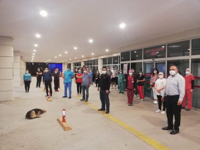 Etkinlikte Pandemi Hastanesi olan Manisa Merkezefendi Devlet Hastanesi çalışanı sağlıkçılarda alkışlarıyla destek verdi.