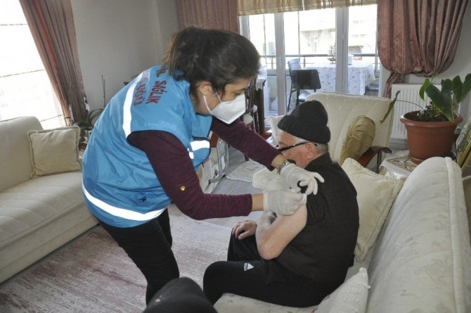 Tekirdağ'da sağlık ekiplerince 75 yaş üstü vatandaşların korona virüs aşılamaları sürüyor.