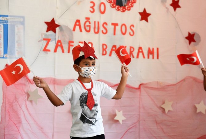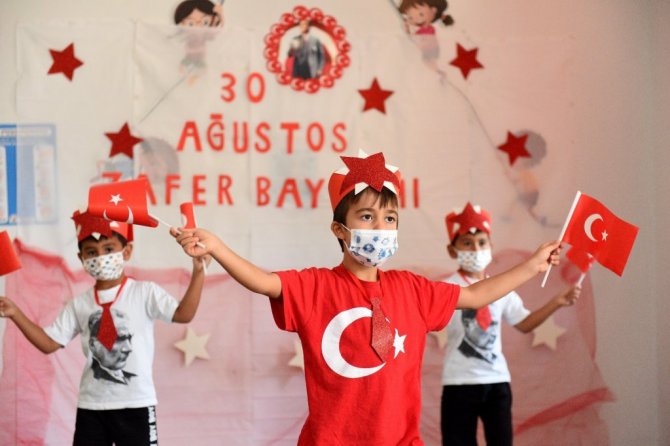 Yaz döneminde de eğitime devam eden kreşte, 23 Nisan'dan 19 Mayıs'a, bayramları birlikte kutlayan öğrenciler, 30 Ağustos Zafer Bayramı için de öğretmenleriyle özel bir gösteri hazırladı. Bayram için Gazi Mustafa Kemal Atatürk fotoğraflı bir pano yapan çocuklar, sosyal mesafenin hulahoplarla sağlandığı gösteride ellerinde Türk bayrakları, yıldızlı taçlarıyla şiirler okuyup marşlar söyledi.