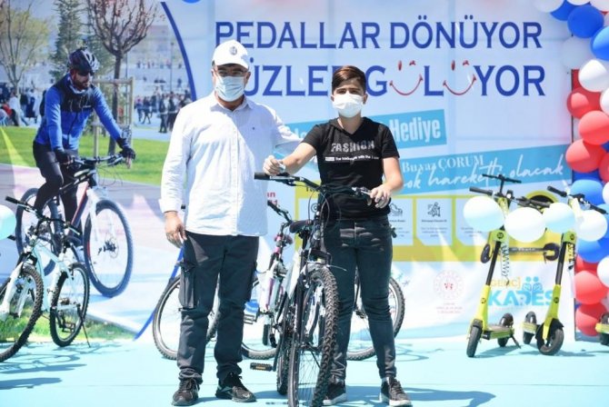 Çorum Belediyesi tarafından bisiklet kullanımı ve sporunun yaygınlaştırılmasının yanı sıra sağlıklı yaşamanın bir parçası haline getirmeyi amacıyla hayata geçirilen "Pedallar dönüyor, yüzler gülüyor" projesi kapsamında bisiklet turu düzenlendi.