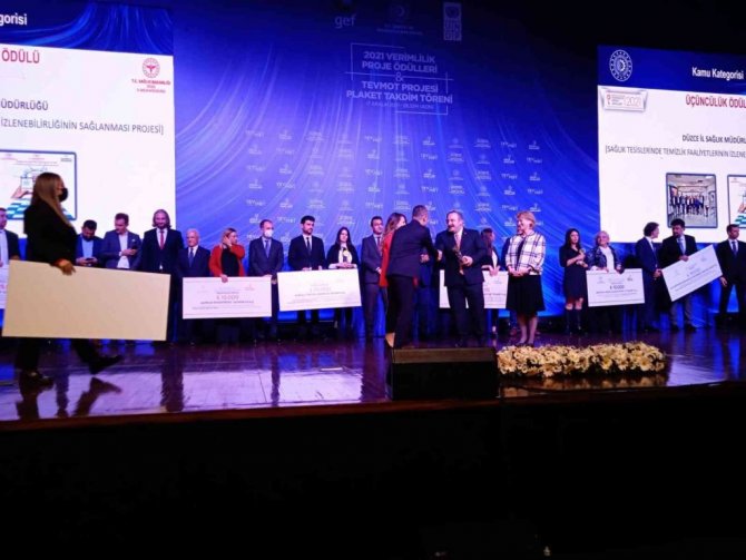 Düzce'de sağlık alanında güzel çalışmalar olmaya devam ediyor. Bu kapsamda geçtiğimiz yıl çalışmaları yapılan ve Düzce Atatürk Devlet Hastanesi'nde tanıtımı Kamu Hastaneleri Hizmetleri Başkan Yardımcısı Dr. Elif Yılmaz tarafından yapılan Sağlık Tesislerinde Temizlik Faaliyetlerinin İzlenebilirliği Projesi Sanayi ve Teknoloji Bakanlığı tarafından verilen Verimlilik Ödüllerine katılmaya hak kazanmıştı. Projeyi değerlendiren bakanlık yetkilileri ve jüri, projeyi ödüle layık buldu.