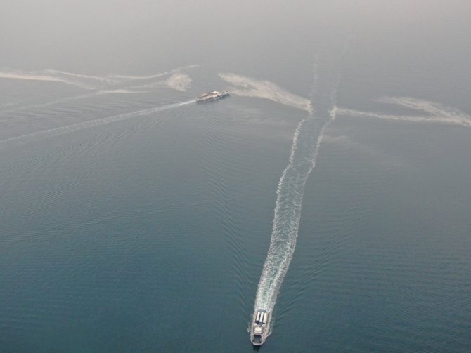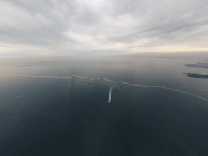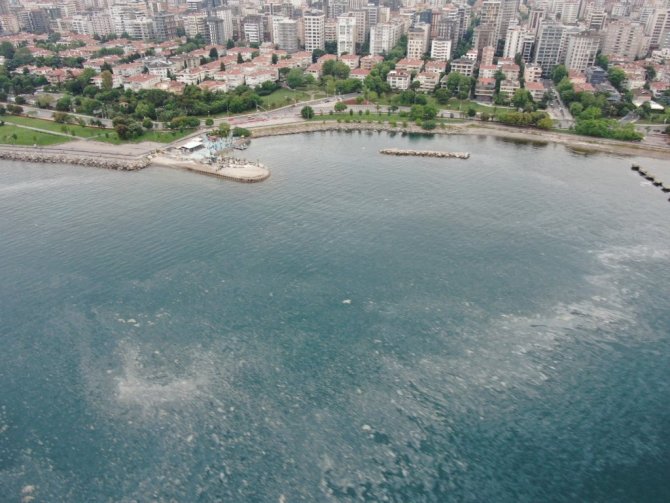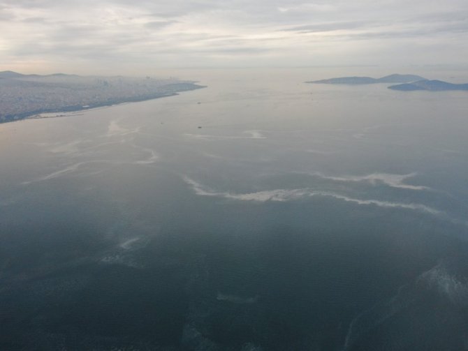 İstanbul Anadolu yakası sahillerinden adalara uzanan müsilaj tabakası havadan görüntülendi.