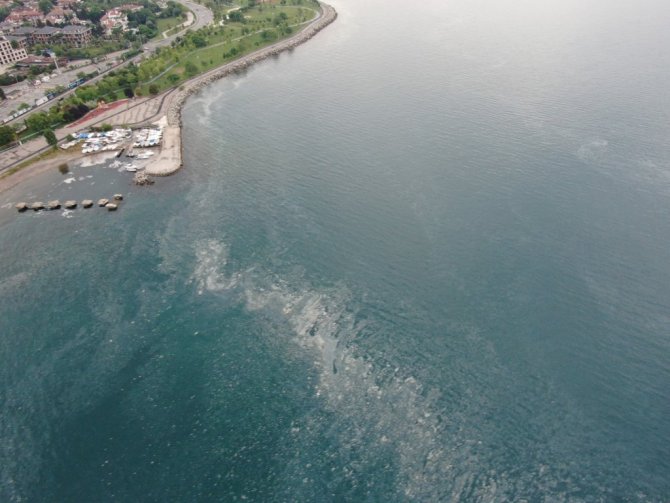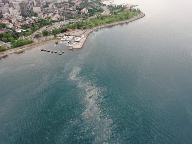 Sahilden adalara uzanan müsilaj tabakası drone ile görüntülendi