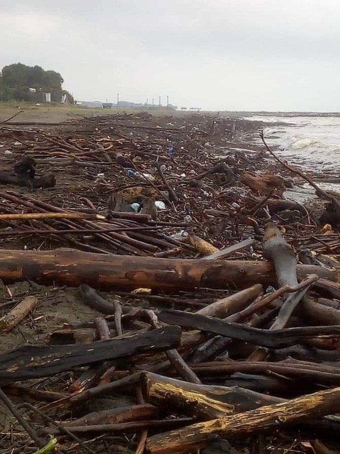 Sel felaketi sonrası Akçakoca'nın Melenağzı sahilleri adeta odun deposuna döndü.