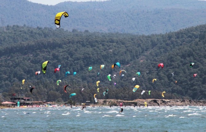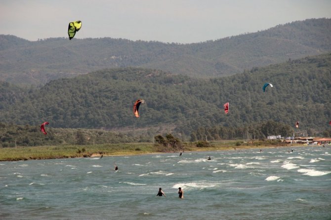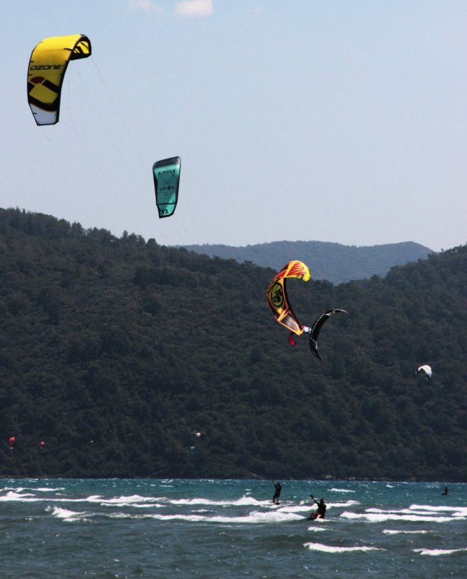 Türkiye'nin en iyi Kitesorf alanı olarak gösterilen Ula'nın Gökova Körfezindeki Akçapınar sahilinde Kitesorfçüler rüzgar eşliğinde uçuşun tadını çıkardı. Uzun ve sığ bir kıyı şeridine sahip Akçapınar sahilinde yaklaşık 100 sörfçü, öğle saatlerinde sahilde oluşan rüzgar ile akşam saatlerine kadar deniz üstünde sörf yapmanın keyfini yaşadı.