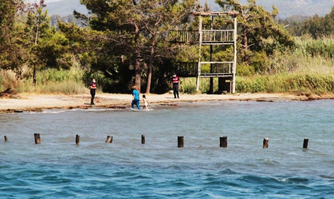 Akyaka sahilinde sürekli olarak devriye görevi yürüten jandarma ekipleri denize giren vatandaşlar hakkında cezai müeyyide uygularken, maske ve mesafe konusunda da denetimlerini sürdürdü.