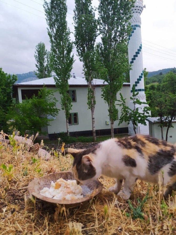 Adana'nın Saimbeyli ilçesinde başlatılan uygulamayla cami etrafındaki sokak kedileri ve köpeklerine, cami görevlileri ve cemaat sahip çıkıyor.