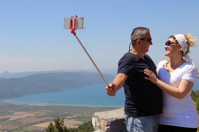 Muğla’nın en bakir koylarının yer aldığı, Gökova Körfezi’ne hakim karayolunun geçtiği Sakartepe rampasındaki ‘Seyir Tepesi’ yerli ve yabancı turistlerin mola noktası haline gelirken, ziyaretçiler ünlü Gökova Körfezi manzarasını arkasına alarak bu anı fotoğraflıyor.