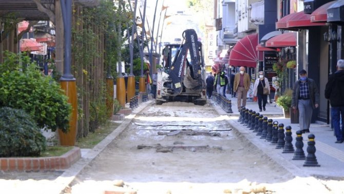 Sinop Belediyesi Sakarya Caddesi'nde başlattığı tadilat çalışmalarını hızla sürdürüyor.