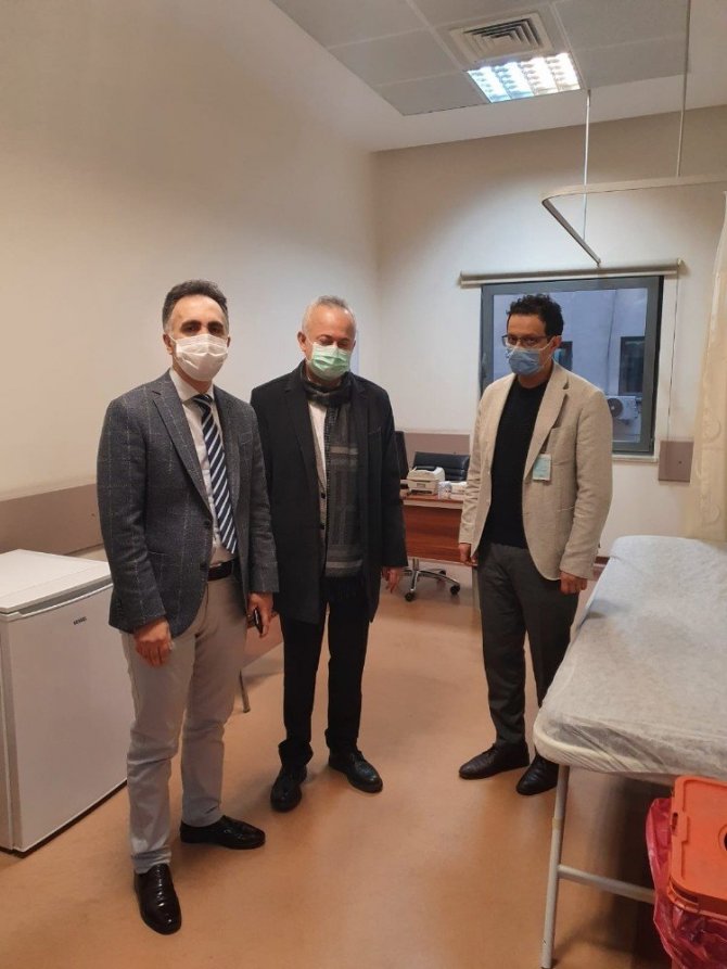 Sakarya İl Sağlık Müdürü Doç. Dr. Aziz Öğütlü, hastanelerde oluşturulan aşı odalarında incelemelerde bulundu. Ziyaretler esnasında Öğütlü'ye eşlik eden Sakarya Eğitim ve Araştırma Hastanesi Başhekimi Doç. Dr. Fikret Halis, yapılan çalışmalarla ilgili bilgi verdi. İsteğe bağlı olarak ilk etapta sağlıkçıların aşı olacağı ve bakanlık tarafından oluşturulan sistem ile MHRS üzerinden aşı randevusu alınabileceği belirtildi. Bakanlığın aşılama izni vermesinin ardından aşılamaya başlanacağı da öğrenildi.